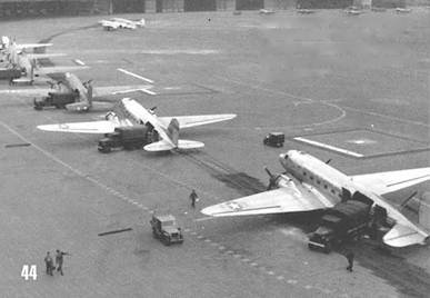 Разгрузка С-47 в аэропорту Темпельхоф 2 июня 1947 г. На этом аэродроме также базировались и разведчики погоды В-17.
