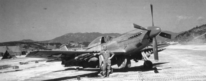 Пока происходили все эти события, командование ООН продолжало наращивать авиационную компоненту группировки на ТВД. В ноябре число эскадрилий «Мустангов» пополнила 2-я южнофриканская, носившая гордое наименование «Летающие гепарды» (Flying Cheetahs) 4* . Идея участия части южноафриканских ВВС в корейской кампании возникла 4 августа 1950 г., когда правительство Южноафриканского Союза заявило о намерении направить в Корею в рамках сил ООН эскадрилью, укомплектованную добровольцами. Для этого и была выбрана 2-я эскадрилья южноафриканских ВВС (SAAF). Было решено, что штат эскадрильи составят добровольцы как из числа ветеранов, так и молодых пилотов и техников, а также гражданский персонал. На момент принятия решения эскадрилья была оснащена английскими истребителями «Спитфайр Mk.IX», которые было решено оставить в ЮАР, а на ТВД перебросить только лётно-технический и административный состав, который должен будет освоить «Мустанги».