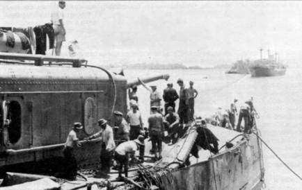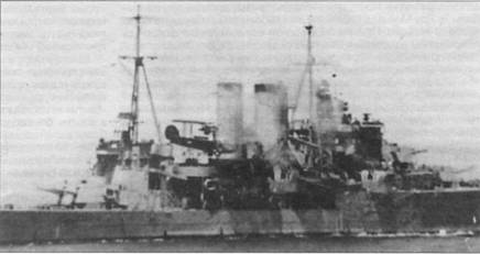 Так выглядел 14 февраля 1942 г. ветеран боя Ла-Платы – британский тяжелый крейсер «Эксетер». Хорошо виден пожар в районе катапульты, на которой находится поврежденный «Валрус», рядом видна искореженная стрела крана.