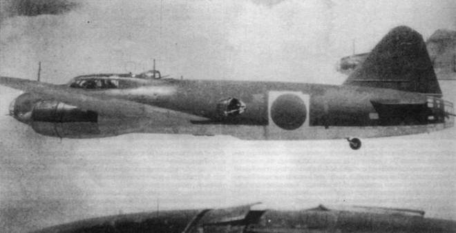 G4M2 модель 24 из состава 763-й авиагруппы. Модификация 24 отличалась от 22-й модели удлиниенными 20-мм автоматическими пушками Тип 99 модель 2, устанавливавшимися в верхней, боковых и хвостовой турелях. Кроме того, данная машина несла бортовой радиолокатор «Яги», о чем можно судить по антенне, размещенной в носовой части самолета.