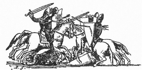 Схватка рыцарей в XII в. По миниатюре из рукописи «Саксонское зерцало», Гейдельберг