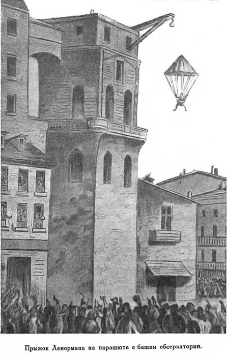 Прыжок Ленормана на прашюте с башни обсерватории.