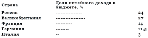 3. Страны, производящие водочные, спиртные изделия, базирующиеся на зерновом сырье, неизбежно получают от этого более высокие поступления в бюджет, чем страны традиционного виноделия, где вино — обычный повседневный продукт деревенского производства и народного питания. (Ср. Италия!)