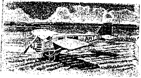 В раннее июньское утро с аэродрома поднялся маленький, изящный как стрекоза, «АНТ-12». Сделав прощальный круг над павильоном, аппарат забрал высоту и понесся к востоку. В кабинке аппарата сидели Груздев, Бутягин и Андрейко. Шума мотора почти совсем не было слышно, так как аппарат был снабжен глушителем системы Лебедева. Это изобретение позволяло разговаривать находящимся в кабинке во время полета.
