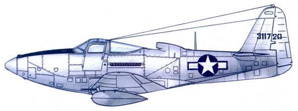 Оба истребителя, поставленных в Великобританию, были окрашены в сочетание оливково-зелёного и нейтрально-серого цветов. Вместо американских звёзд они несли британские кокарды, причём на крыле — симметрично. На киле нарисовали «флажок» цветов национального флага, частично наложив его на американский учётный номер. Британский учётный номер (чёрного цвета) наносился на хвостовую часть фюзеляжа возле стабилизатора. На носовой части фюзеляжа на американский манер изобразили жёлтый косой крест, хотя по английским нормам следовало рисовать букву «Р» в круге.