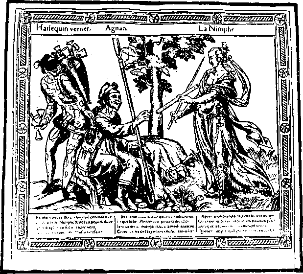 Арлекин — Продавец посуды. Гравюра XVI в.