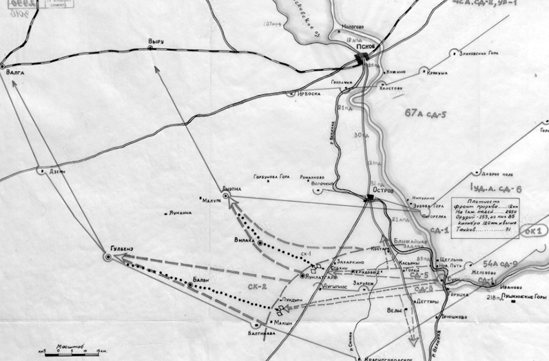 В последующем ударное крыло фронта должно было осво бодить Лыэпну, Гулбене и прорвать оборону противника в районе города Остров и севернее.