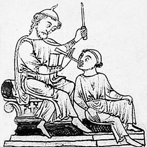 Возвращаясь во времена Киевской Руси, отметим, что народная медицина, восходящая к временам язычества, существенной частью которой были магические заклинания и заговоры, активно использовала эти приемы для лечения стоматологических больных. В качестве примера приведем несколько заговоров против зубной боли: «Как земляника эта засыхает и завядает, так чтобы у раба божия зубы замирали и занемели, чтобы черви и пути занемели, по сей день, по сей час»; «Месяц ты месяц, серебряные рожки, златые твои ножки. Сойди ты, месяц, сними мою зубную скорбь. Унеси боль под облака. Моя скорбь ни мала, ни тяжка, а твоя сила могуча. Вот зуб, вот два, вот три. Все твои, возьми мою скорбь» [43] .