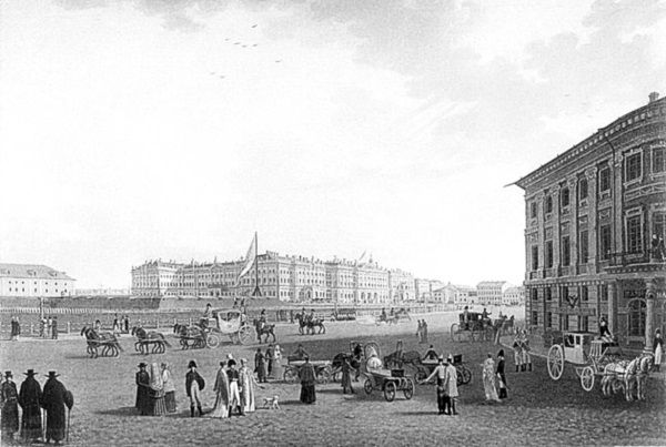 Б. Патерсен. Вид на Дворцовую площадь и Зимний дворец от начала Невского проспекта. Начало XIX в.