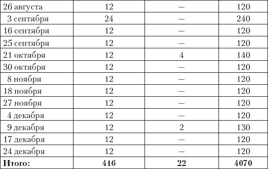 В-пятых, следует обратить внимание на высокую стоимость стоматологических препаратов. За шесть месяцев «на зубы» было потрачено более 4000 руб. Для того чтобы соотнести эту сумму с масштабом цен того времени, приведем следующий пример. В 1824 г. Александр I пожаловал нескольким придворным дамам ювелирные подарки. Баронесса Строганова получила «фермуар бриллиантовый с изумрудом и пять жемчужных ниток» стоимостью в 8000 руб., графиня М.Г. Разумовская – «сквалаж бриллиантовый с тремя аметистами» за 3200 руб., жена подполковника Алабова – «Фермуар бриллиантовый с тремя аметистами» за 1900 руб. [111] Таким образом, даже стандартный уход за полостью рта выливался для Александра I в очень приличные суммы.