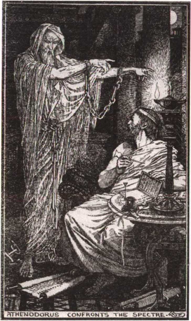 Афинодор и призрак старика. Иллюстрация Генри Форда (1900) к письму Плиния Младшего. Цепи привидения и хладнокровная реакция человека — приемы, усвоенные впоследствии викторианскими пародистами