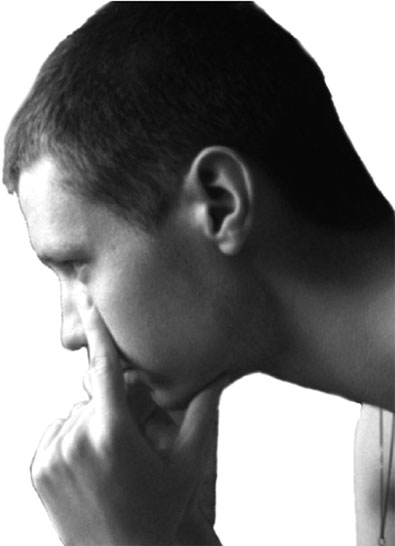 Для надавливания используем две симметричные точки, расположенные на два пальца вниз от нижнего века и на один палец в обе стороны от крыльев носа. Чтобы усилить надавливание, локти уприте в поверхность стола, а голову с усилием опустите на пальцы (фото 18).