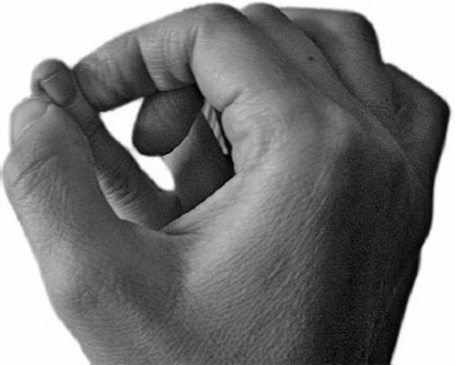 Чтобы улучшить аппетит, будем надавливать возбуждающую точку на мизинце (ее используют также для повышения давления, об этом мы еще будем говорить). Точка расположена с наружной стороны мизинца, на верхней фаланге. Ногтем большого пальца надавливаем на точку кратковременно (всего по 7–10 секунд), но ритмично и попеременно на левом и на правом мизинце (фото 23). Надавливания должны быть весьма ощутимыми и малоприятными. Приемы надавливания можно использовать всякий раз перед приемом пищи.
