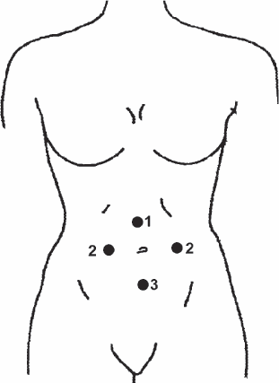 4. Симметричные точки (5), расположенные на самой высокой области живота. На 3 пальца кнаружи и на 3 пальца ниже пупка.