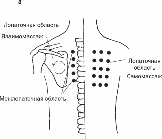 Самомассаж зоны лопаток, в принципе, возможен (рис. 58, а). Но взаимомассаж является простым и красивым методом. Исходное положение для него следующее.