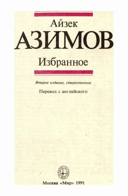 Это краткое вступление к однотомнику хотелось бы закончить выдержкой из послания Азимова к японским читателям: «Люди на Земле должны дружить. Я всегда старался подчеркнуть это в своих произведениях… Не думаю, что можно заставить всех людей любить друг друга, но я желал бы уничтожить ненависть между людьми».