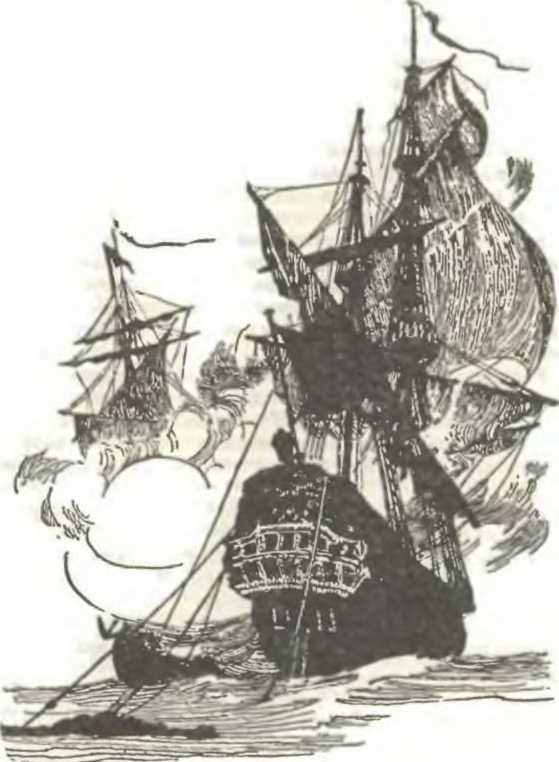 Ветер отнес дым назад, к англичанам, и клубы его, ненадолго окутав палубу, поднялись к парусам и уплыли прочь вслед за взрывной волной. Сквозь грохот пушек послышался свист ядра и треск дерева. Проводив взглядом вражеский корабль, который продолжал идти прежним курсом, Ладлоу с юта стал нетерпеливо осматривать такелаж.