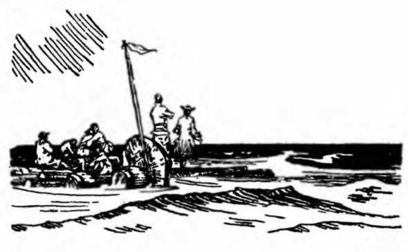 Маленький флаг остался незамеченным, и люди на плоту после столь долгого и мучительного ожидания с тоской увидели, как быстрое судно безвозвратно уходит все дальше и дальше. Даже у Бороздящего Океаны, как видно, защемило сердце от разочарования.