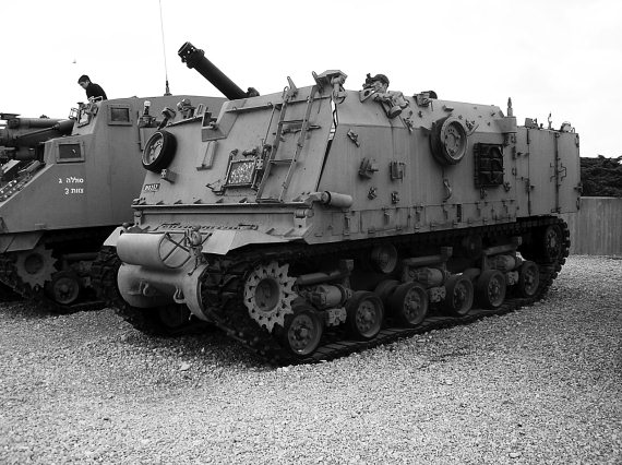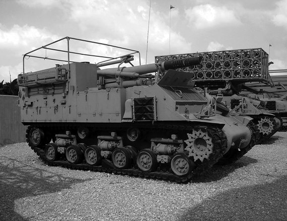 Самоходная 155-мм гаубица М50 в экспозиции танкового музея в Латруне. На заднем плане – 290-мм ПУ «Эпископи», также выполненная на базе танка «Шерман»