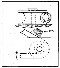 Прежде чем говорить об изготовлении такой мебели, надо рассмотреть устройство для гибки труб. Оно (рис. 43) представляет собой стальной шкив с ручьем, равным диаметру трубы. Сверху и снизу к шкиву примыкают две щечки из листовой стали толщиной не менее 5 мм. Все это стянуто болтом, который крепит устройство к верстаку. На верстаке также установлен съемный упор. Заложив трубу, как это показано на рисунке, ее гнут до нужной формы.