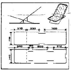 Легкий складной шезлонг выходит из двух каркасов старых раскладушек (рис. 44). Он представляет собой две рамки – одна для сиденья, другая для спинки. Рамки соединены между собой двумя болтами. По всему периметру рамок на пружинах закреплено полотнище из плотной ткани. Наклон рамок относительно друг друга регулируется двумя зубчатыми рейками (как у изголовья раскладушек).