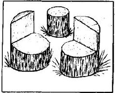 Садовая мебель из пней и бревен. Простые и удобные сиденья делают из пней и обрезков бревен, врытых в землю (рис. 36). Ровные срезы получают, используя бензиновую пилу типа «Дружба» или на худой конец двуручную пилу.