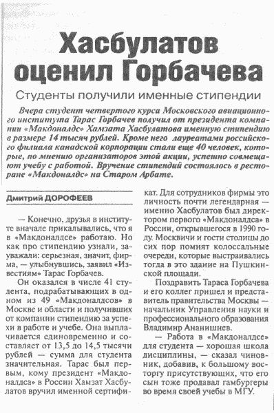 Дмитрий Дорофеев. Хасбулатов оценил Горбачева // Известия.