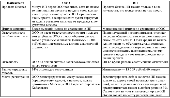 Основные отличия индивидуальных предпринимателей от обществ с ограниченной ответственностью