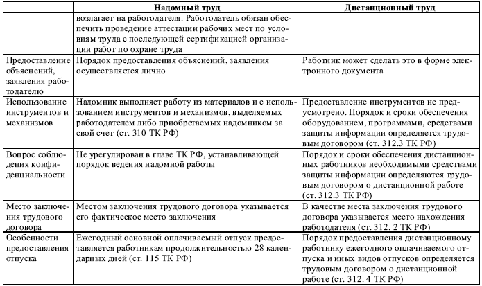 Вместе с тем надомный труд нужно отличать от дистанционного.