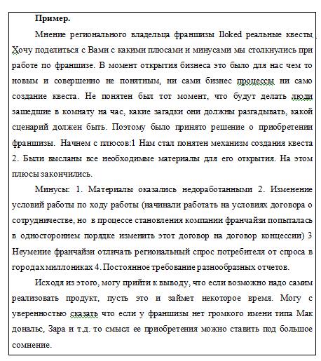 права и обязанности обеих сторон. В договоре должен быть полный перечень прав, предоставляемых предпринимателю и система поддержки его бизнеса;