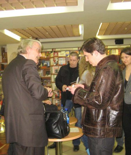 Рис. 6. На фото: Бабенко В. Т. (слева) и Андрей Ангелов. «Библио-Глобус», обмен визитками!