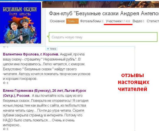 Мне повезло, у меня, в результате моего самиздата, образовалось столько поклонников, что кто-то даже создал группу «Фан-клуб Безумных сказок», в соцсети. За несколько месяцев там уже состоит более 17 тыс. человек.