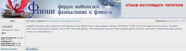 И отзывов прилично, хотя в целом наст, читатели (повторю) не пишут их… Иногда у Ангелова просят выслать Сказки из мест не столь отдаленных. Обложка 1 тома является доп. стимулом такого желания. Ниже единственный отзыв «оттуда», что мне известен: