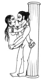 Партнеры занимаются любовью стоя, держась за тела друг друга или опираясь о стену или колонну.