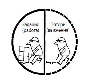 И дело совсем не в том, что японцы проявляют какое-то особое усердие, просто они не любят, когда им нечего делать на работе. Ведь им платят за то, чтобы они что-то делали. И вот для того, чтобы хоть что-то делать, они нередко совершают ненужные движения. Поэтому в процессе работы возникает два вида движений. Один вид движений нужен для производства продукции, способствует поступательному