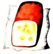— Вот колбаса, вот сыр, вот окорок. Покушайте всего, — радушно угощал он.