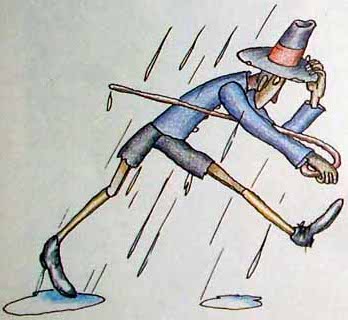 Смотрите, как он отчаянно машет тросточкой и старается увернуться от каждой капли дождя. Но подождите над ним смеяться. Когда вы узнаете, что маленький прохожий сделан из картона, а одежда его сделана из бумаги, вы поймёте, почему он боится дождя.