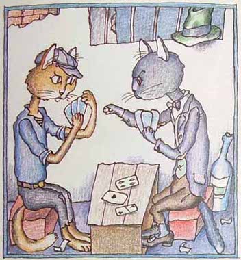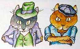 Пускай себе спит. А потом заглянем в подвал одного дома поблизости. Там мы увидим двух неразлучных котов, Умника и Проказника, тех самых, что собирались «пожевать» Человечка.