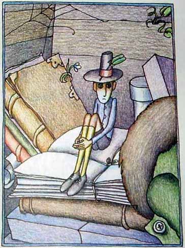 — Глубокоуважаемый постоялец, — говорил Деревянный Ящик, — иначе сказать, жилец, а точнее, квартиросъёмщик… Если слово «квартиросъёмщик» вас задевает, прошу меня извинить. Словом, я хотел сказать, что… Но может быть слово «что» вас не устраивает? Я могу обойтись без него. Моя мысль состоит в том, э-э, если выбросить слово «что», в том, э-э… к сожалению, без этого слова я не могу закончить свою мысль…