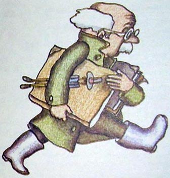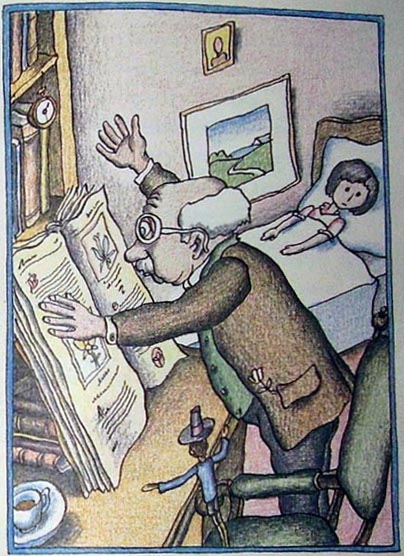 Доктор Ворчун взял Картонного Человечка под мышку, другой рукой прихватил несколько книг и направился к дому.