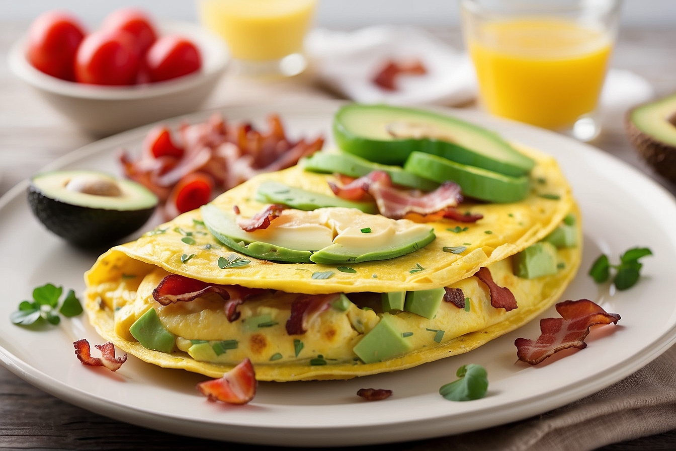 Нежная смесь сливочного авокадо и хрустящего бекона, завернутая в воздушный омлет. Этот завтрак, наполненный белком и полезными жирами, подарит вам чувство сытости и заряд энергии на долгие часы.