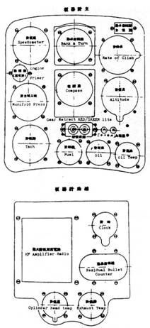 Главная и вспомогательная приборные доски Ки-43-I (Фрагмент оригинальной инструкции, добытой союзнической разведкой).
