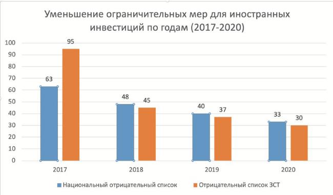 Заметно уменьшается и список секторов, куда иностранцы до этого не имели права направлять
