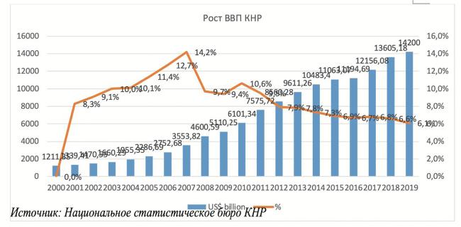 В абсолютных цифрах прирост ВВП продолжался уже с 1991 г. (было лишь небольшое снижение в 2016 г.), но сами темпа роста с 2011 г. замедлялись. С середины 2018 г. Китай был втянут в торговое противостояние с США, которое завершилось «первой фазой» сделки – она обязывала Китай закупить в США в течение двух лет американских товаров на 200 млрд долл. Причем закупить в безальтернативном порядке, «отодвинув», очевидно, многих других своих партнёров.