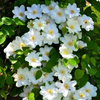 Жакмана. Многочисленные сорта представляют собой полудревянистые или травянистые лианы с побегами 3–4 м длиной и цветками диаметром 10–16 см, которые распускаются на побегах текущего года. Преобладают сине-фиолетово-пурпурные тона. Цветение обильное – с июля и до середины сентября.