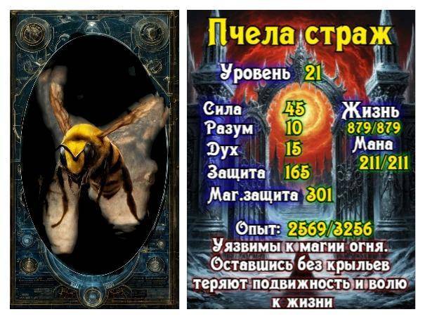 Заклинание вампиризма начало иссушать пчелу, и тогда я решил добавить.