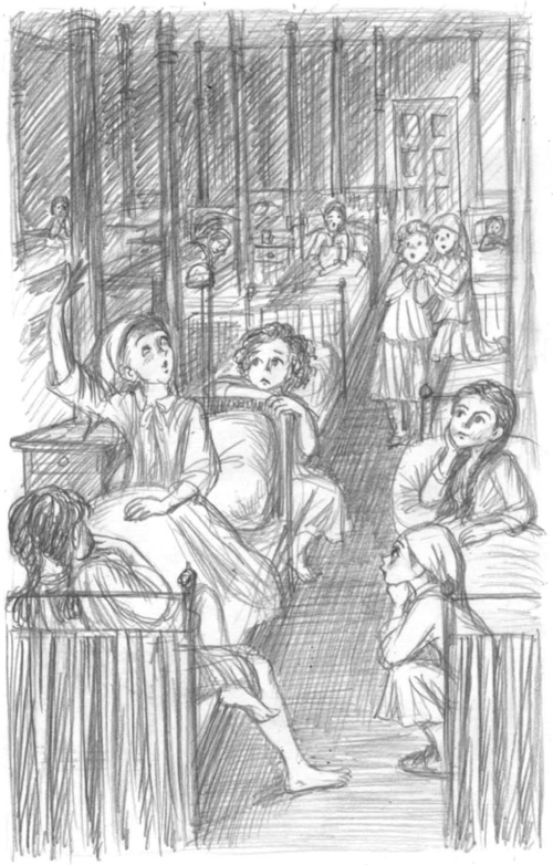 Наступил вечер. Нас отвели в дортуар и до спуска газа предоставили самим себе. Девочки, очевидно забывшие о моем решении идти на паперть, разбившись на группы, разговаривали между собой. Только маленькая Люда ежеминутно устремляла на меня свои вопрошающие глазки.
