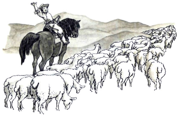 — К отцу! — сказал мальчик. — Он погнал большой скот, а я — этот. Триста голов!