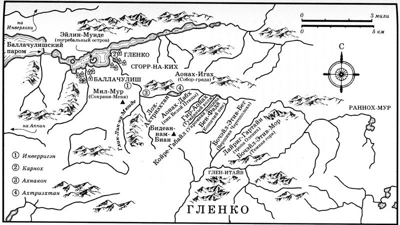 Она была знаменитой колдуньей из Гленко… Интересно то, что, несмотря на дурную репутацию этой женщины, ее тело должно было упокоиться на погребальном острове Эйлин-Мунде. По словам местных жителей, как бы ни бушевало море, оно обыкновенно успокаивалось, чтобы допустить лодку к месту захоронения. В случае с Корраг шторм не прекратился, пока наконец ее не похоронили рядом с тем местом, где сейчас проходит дорога. Надо сказать, в Хайленде острова очень часто использовались для погребения.