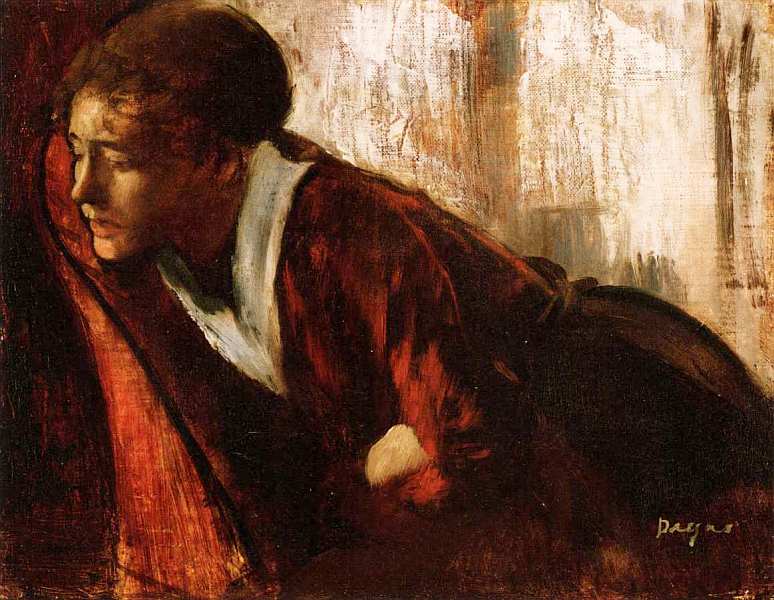 Эдгар Дега — выдающийся французский художник конца XIX — начала XX века, которого традиционно причисляют к импрессионистам. Он был старшим сыном в богатой аристократической семье, несмотря на желание отца выучить его на юриста, проявлял склонность к рисованию и в возрасте 20 лет поступил в мастерскую живописца Луи Ламота. Первоначально финансовое состояние позволяло юноше шлифовать свое искусство, не думая о продаже работ. Однако после смерти отца вскрылись большие долги, которые заставили задуматься о коммерческой стороне вопроса. Имея друзей среди новаторов, отвергнутых официальным Салоном, живописец начал экспонировать картины вместе с ними, став таким образом участником знаменитой выставки 1874 в галерее фотографа Надара в Париже, после которой появился термин «импрессионизм». Между тем, шествуя в дальнейшем руку об руку с импрессионистами, экспонируя холсты совместно, формально причисляемый к названному направлению, Дега рисовал в несколько другом стиле. Известно о его пренебрежении к пленэрам и пейзажам. Вместо этого излюбленными темами мастера были бытовые эпизоды с неожиданными ракурсами и укрупненными планами.